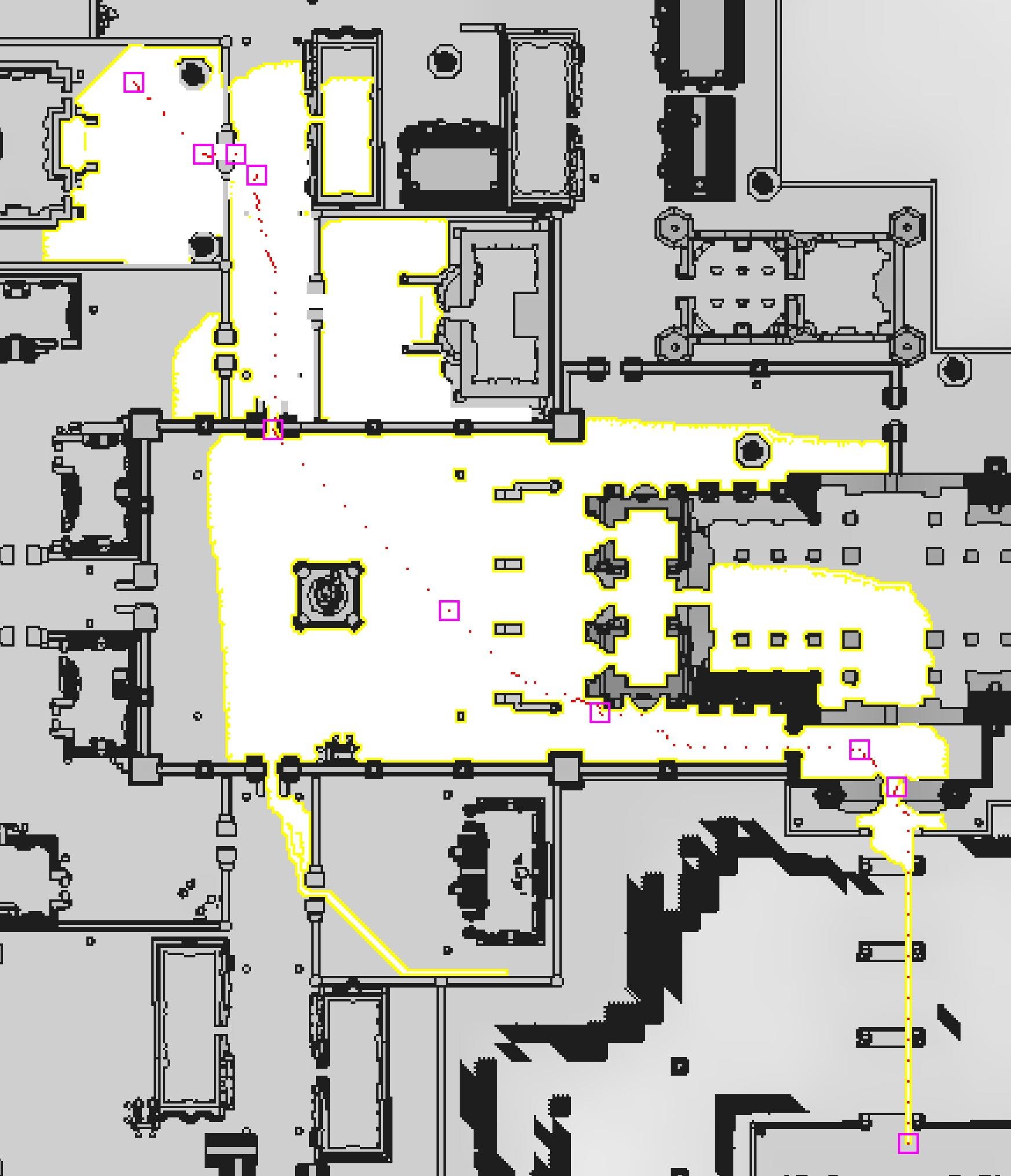 Я могу попробовать улучшить работу поиска, только если будут точные координаты точек А и Б, между которыми не получается найти путь. Пример построение пути в гиране :) Белое это "разлитая вода" модифицированного А*, желтая граница это открытые ноды фронта волны, красные точки построенный путь, а квадратики это итоговые ключевые точки, полученные после упрощения пути (точки, между которыми нет препятствий), по которым в итоге пройдет персонаж.