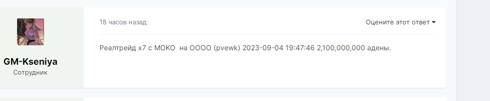 Произошла продажа морай рар хеви верха, человек в игре купил его за адену, а админы это зачитали как продажа за реал.