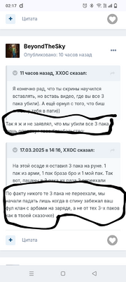Зайди в свой профиль, открой все свои посты и там найдешь. В каждом посте ты это настрачиваешь. Ты развалил всех, оппонент ничего не смог и тд. Мне даже скринить не нужно. Да и я уже скидывал скрины где обосновал что ты балабол, а не кто-нибудь другой. Повторю несколько моментов: 1) ты кричал, скидывая скрины, что тебя встречали 3(три) пака, а по факту 2(два), даже на скринах есть! 2) ты утверждал, что они ничего не смогли сделать пока весь остальной клан не пришёл, а по факту регрупнулись только 2 пака и ты обосрался в равных количествах! 3) ты сам потом признал своё балабольство, что не весь клан пришёл! 4) да и этого хватит! Ещё время на это тратить! И давай как всегда "не отстреливаем", "горим", "сфелились", "шлюханулись", "всех победил", "iq10", "тупой" И всё такое! Погнали! ПыСы: Люм, задумайся, тебя каждый, кто писал в твой адрес, попустил, унизил, обосновал тебе что ты балабол, что ты заднеприводный, психически не здоровый! И не один раз! И не в одной теме! Тебя высмеяли уже всеми ординарными и неординарными способами! Ты даже умудрился прославиться и в теме другого сервера! Такая себе провокация была, чтобы онлайн поднять на сервере и суммона людей в клан! Искусство в твою честь уже по всему форуму(для туго доходящих, это образное выражение)! Даже люди с х55 заходили в тему х5 и извинялись за тебя, за то что ты такой неадекватный!