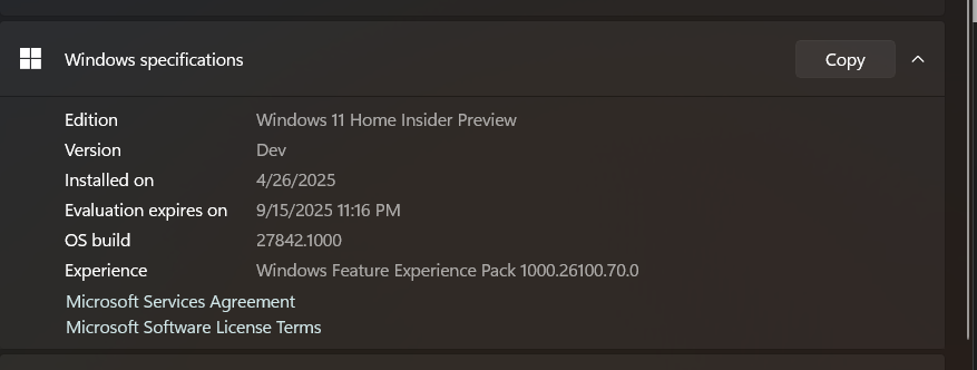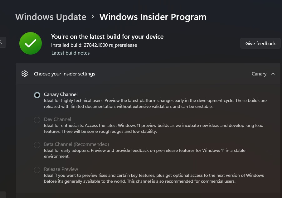 МАХОРЫ4 Опубликовано 26 апреля Поделиться Опубликовано 26 апреля 1 час назад, Wh1teHorse сказал: Всем привет, у меня была 24Н2 версия на которой как и у всех не запускалась л2. У меня лицензия, и вот как я решил проблему: Если нажать кнопку принять участие в тестировании новых версий (не стабильных) виндовс, то после обновления на эту инсайдерскую винду л2 снова запускается, подробнее че нажимать на скриншотах: Там будет выбор версии винды, я выбрал Canary channel. ещё не пробовал но вроде как из этой программы можно в любой момент выйти и вернутьсяна стабильнуюxDxD версию 24Н2 УДАЧИ ! после обновления: Выйти из программы можно токо переустановкой, это билет в один конец, а конец именно 16.09.2025. На билде 27842.1000 видимо тоже работает. Странны пляски, на одних билдах работает на других нет. 0 Цитата Ссылка на комментарий Поделиться на другие сайты Поделиться